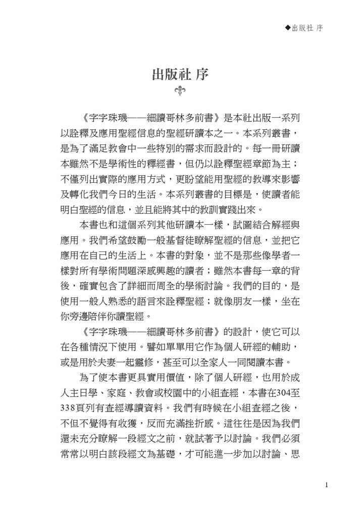 本書的設計特別適用於個人研經輔助、家庭靈修及小組讀書會。